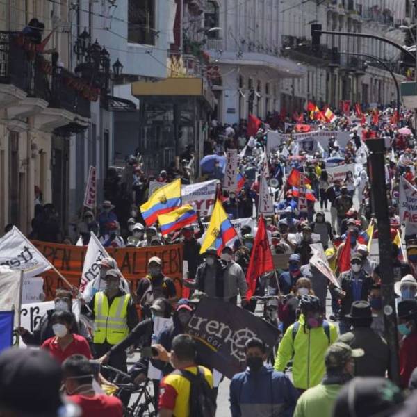 Marchas en Quito y Guayaquil contra medidas económicas, reformas laborales y el cierre de varias empresas públicas