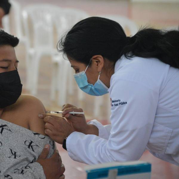 Gema llegó hasta el centro de salud La Libertad, ubicado en el centro de Quito, aquí sus tres hijos que estudian en una unidad educativa recibieron la primera dosis de vacuna contra el COVID-19. Ella afirma que la vacunación es indispensable para que retornen a clases de forma presencial.