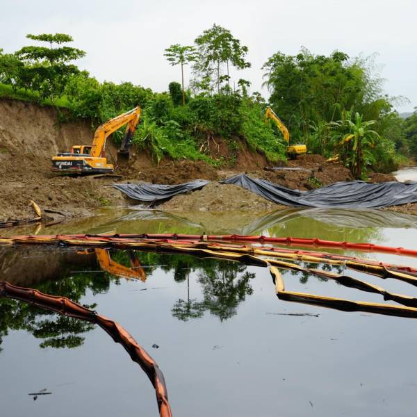 Dos barreras adicionales se colocaron seis kilómetros más abajo en el río Viche y equipos de limpieza y recuperación están desplegados hasta la desembocadura del Esmeraldas.