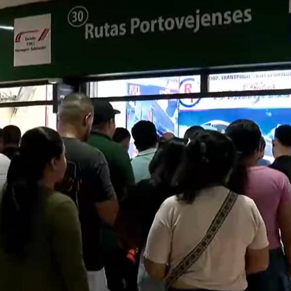Este sábado, desde temprano, hubo largas filas y aglomeraciones en la Terminal Norte de Carcelén, cientos de usuarios esperaron su turno para comprar pasajes y abordar los buses.