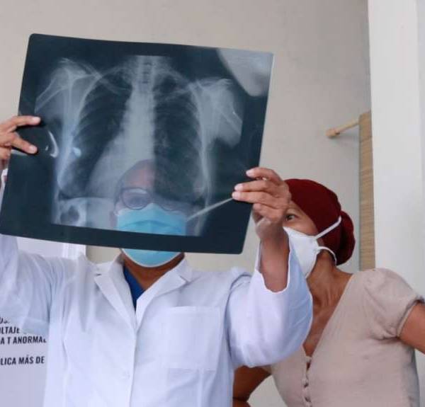 GUAYAQUIL.- La doctora Daysy Avilés revisa una radiografía de los pulmones de una paciente que superó el COVID-19. Ecuavisa.