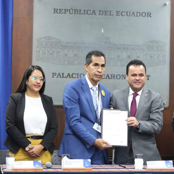 El convenio se firmó en el salón azul del Palacio de Carondelet.( )