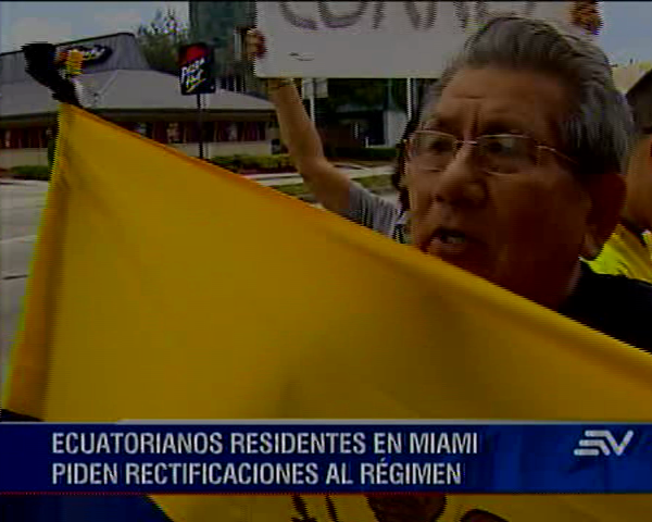 En Miami, el lugar escogido fue el exterior del consulado ecuatoriano. Hasta allí iban llegando ciudadanos que autoconvocados se pronunciaron contrarios a las políticas económicas del régimen.