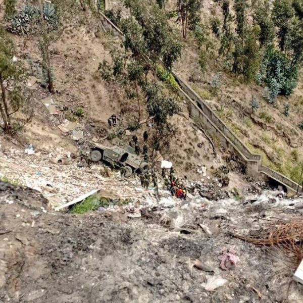 Según el Ejército Ecuatoriano, el vehículo táctico perdió pista y terminó en un barranco. Las personas heridas fueron evacuadas a casas de salud cercanas para recibir la atención médica necesaria.