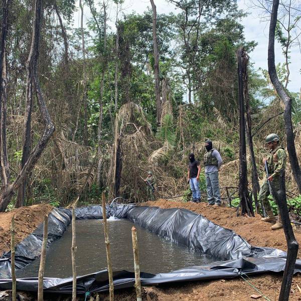 A las 12:00 de este miércoles 24 de agosto de 2022, en el sector en el sector Río Doch, perteneciente a la parroquia Shushufindi en la provincia de Sucumbíos, soldados del Batallón de Operaciones Especiales en Selva N.° 54 Capitán Calles, hallaron de una piscina artesanal con más de 24 mil litros de combustible (gasolina blanca) ubicada entre los matorrales.