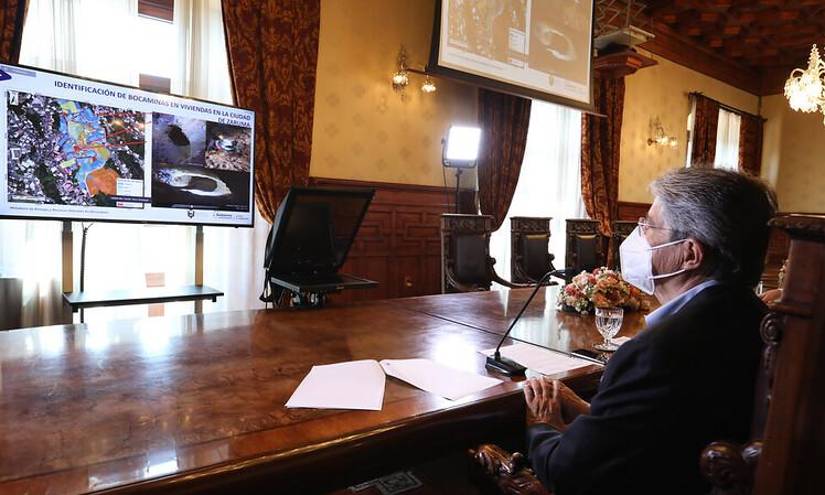 Esta mañana Lasso participó de manera virtual en un comité en el que se dieron a conocer las acciones tomadas desde varias carteras de Estado para tratar de remediar la situación que atraviesa Zaruma.