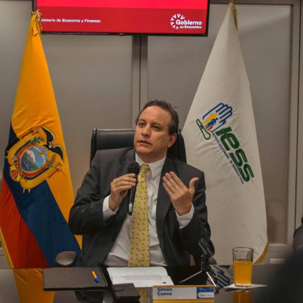 Simón Cueva, ministro de Economía y Finanzas, destacó el convenio de pago con el IESS.( )