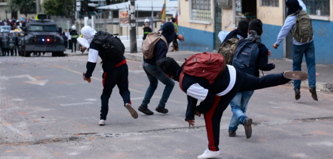El ministro de Educación, Augusto Espinosa, anunció en las redes sociales que suspendía las clases en el Colegio Montúfar debido a las violentas protestas que mantienen grupos de estudiantes desde el lunes.