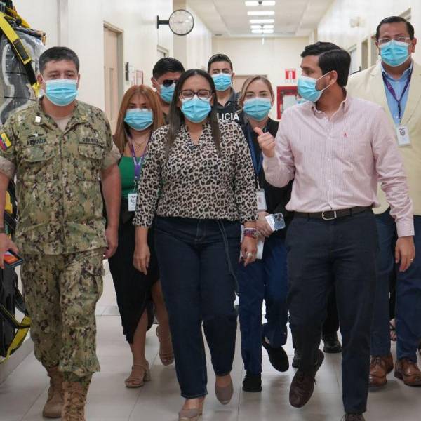 El ministro de Salud, Jimmy Martin, y la ministra de Gobierno, Zaida Rovira, recorrieron este lunes 18 de agosto tres hospitales de Guayaquil que son administrados por gerentes navales desde la semana pasada.