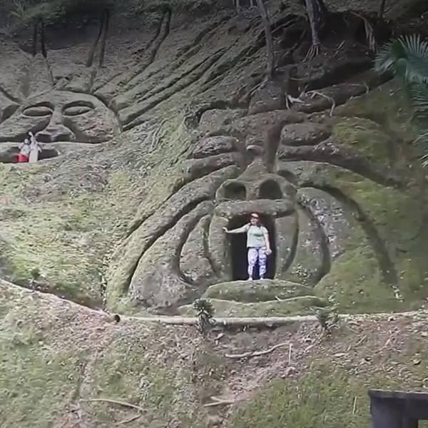 Indichuris es una palabra quichua que significa 'hijos del sol'. Las figuras talladas reposan a la entrada de estas cuevas, por donde los visitantes pueden caminar.