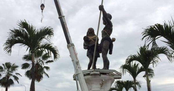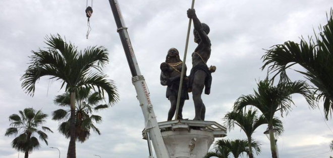 El monumento a Guayas y Quil, ubicado en el intercambiador de tráfico de la avenida Pedro Menendez Gilbert (norte de Guayaquil), se inauguraría en julio de 2016.
