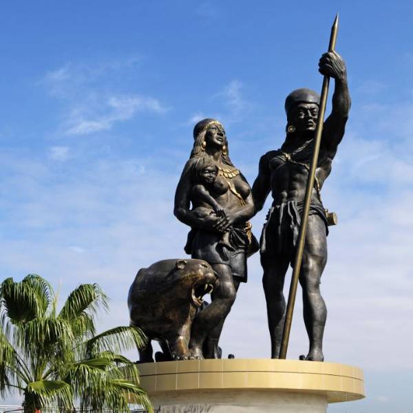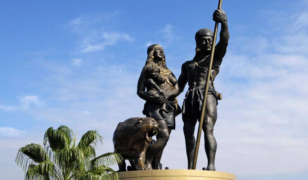 Los 'padres de la ciudad altiva' están ubicados sobre un trono inspirado en la silla 'manteño huancavilca', icónica figura de la arqueología ecuatoriana.