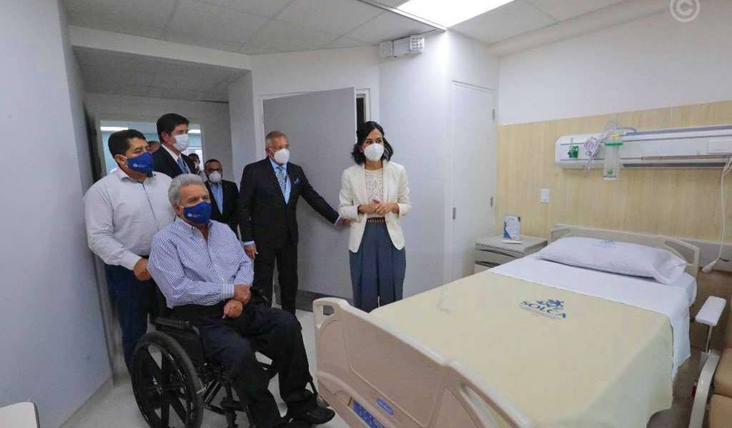 El mandatario Lenín Moreno (izq.), durante una visita a Solca en Guayaquil. Foto: TW Sec. Comunicación
