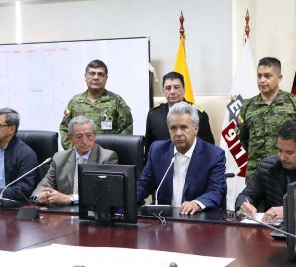 El mandatario despacha desde el ECU 911 junto a varias autoridades del gobierno nacional.