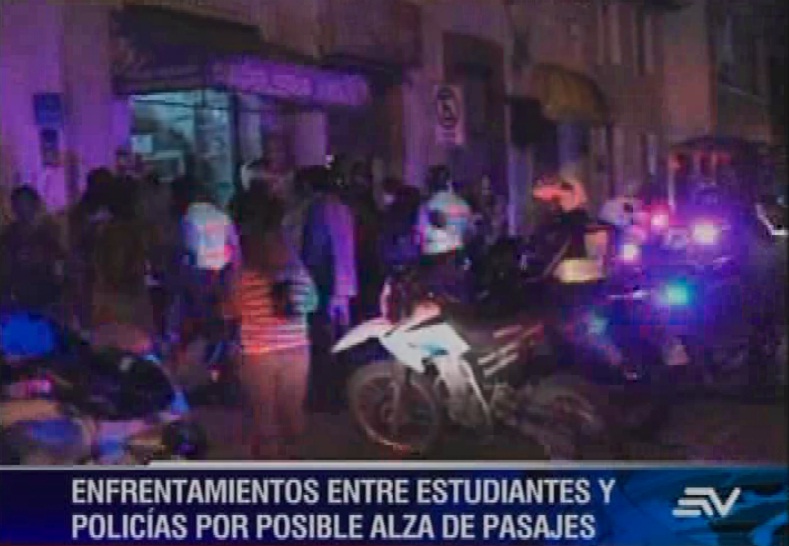 En Ibarra, provincia de Imbabura, la tarde y noche de este jueves se enfrentaron los estudiantes del colegio Teodoro Gómez De La Torre y la Policía. Los alumnos protestaban por la posible alza de los pasajes.