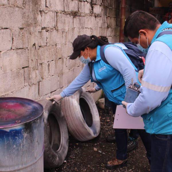 Funcionarios revisan que no se acumule agua en llantas u otros recipientes donde se puedan reproducir mosquitos.( )