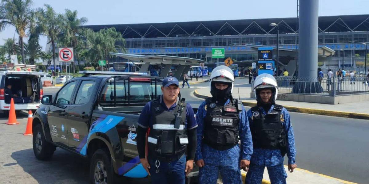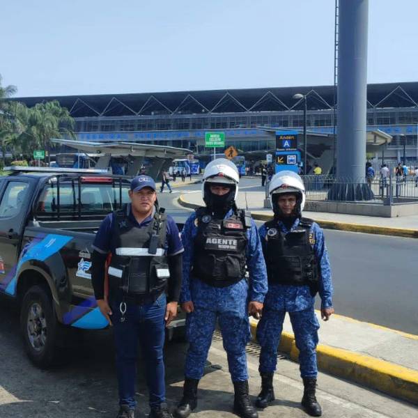 Personal de seguridad municipal vigila la Terminal Terrestre de Guayaquil.