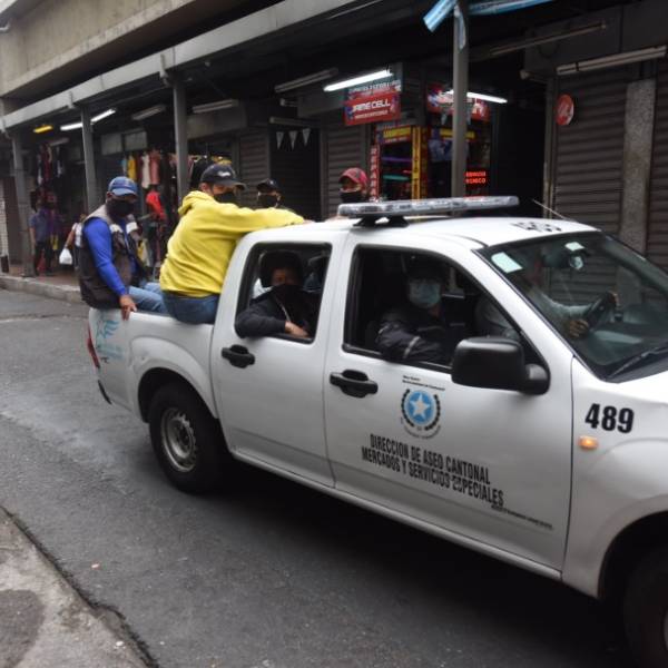 Funcionarios municipales recorren La Bahía, en el centro de Guayaquil. Foto: Twitter @alcaldiagye.