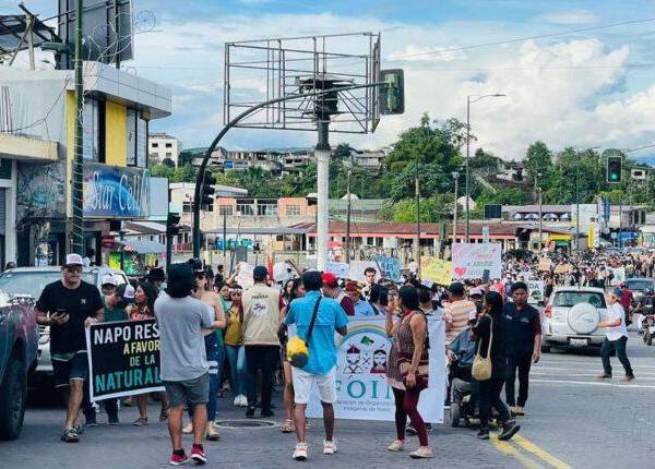 Pero antes de esta movilización, acudieron hasta la fiscalía de Napo para presentar una denuncia en contra de la actividad mineral ilegal y para que se investigue una presunta vulneración de derechos ambientales y sociales.