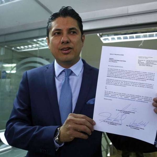 El matrimonio igualitario y la eliminación del Consejo de Participación Ciudadana y Control Social (CPCCS) fueron los temas que motivaron a Balda a acudir al Consejo Nacional Electoral el 17 de junio de 2019.