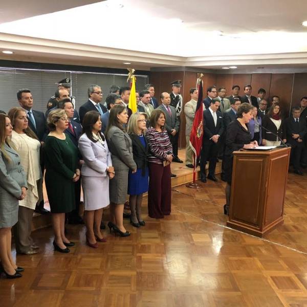 Pronunciamiento de la Presidenta de la @CorteNacional sobre declaraciones de Marcelo Merlo, titular del @CJudicaturaEc transitorio. La acompañan jueces nacionales, provinciales, de primera instancia y representantes de la Asociación Ecuatoriana de Jueces y Magistrados @ecuavisa pic.twitter.com/0DfxyWDxQF