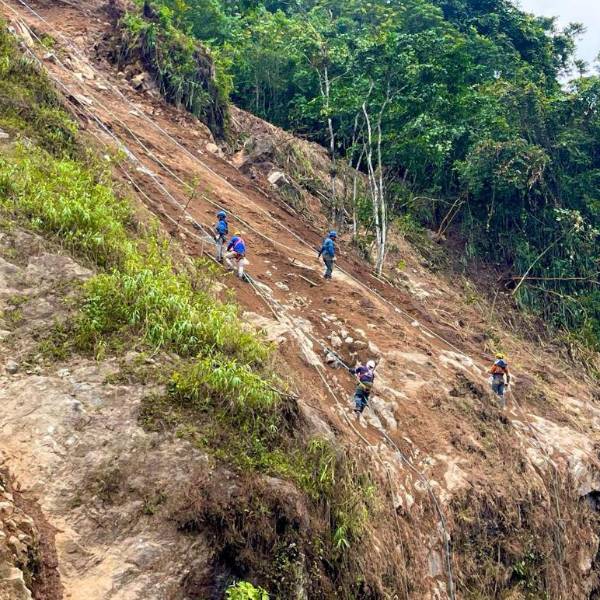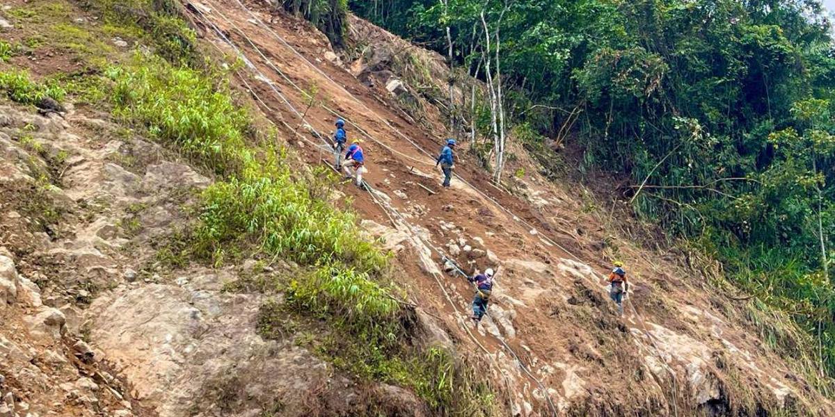 La mañana de este martes 17 de junio se registró un percance con dos trabajadores que resultaron con severos golpes al momento que se desprendió una roca mientras ejecutaban los trabajos de estabilización del talud en el km 83 de la vía Alóag - Santo Domingo.