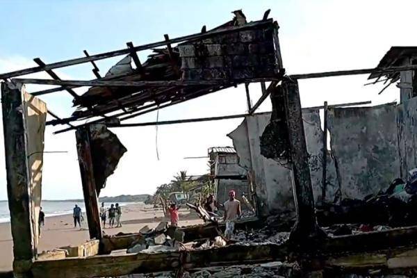 Ocho viviendas destruidas tras el fuerte oleaje en la isla cauchal, zona fronteriza en el norte de Esmeraldas