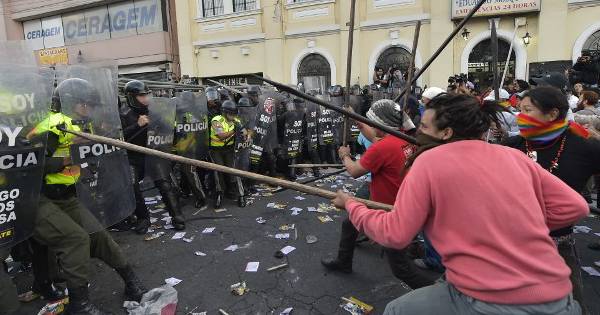 En la capital, manifestantes y policías intercambiaron piedras, palos, lanzas y gases lacrimógenos. Los opositores buscaban llegar a la Asamblea y los uniformados mantenían un cerco para impedirlo.