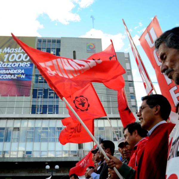 Las organizaciones sindicales de oposición al gobierno y la Confederación de Nacionalidades Indígenas del Ecuador (Conaie) marcharon esta tarde en Quito para rechazar las políticas implementadas por el gobierno.