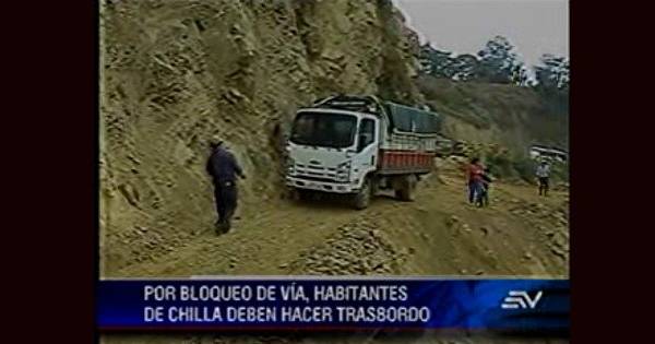 Desde hace un mes los habitantes del cantón Chilla deben realizar transbordo para sacar sus productos, ese es el caso de Carmen Argentina y su hija, quienes cruzan a diario por el angosto tramo de la carretera poniendo en peligro su vida. ''Todos los días tenemos que cruzar así. No podemos pasar'', dijo Argentina.