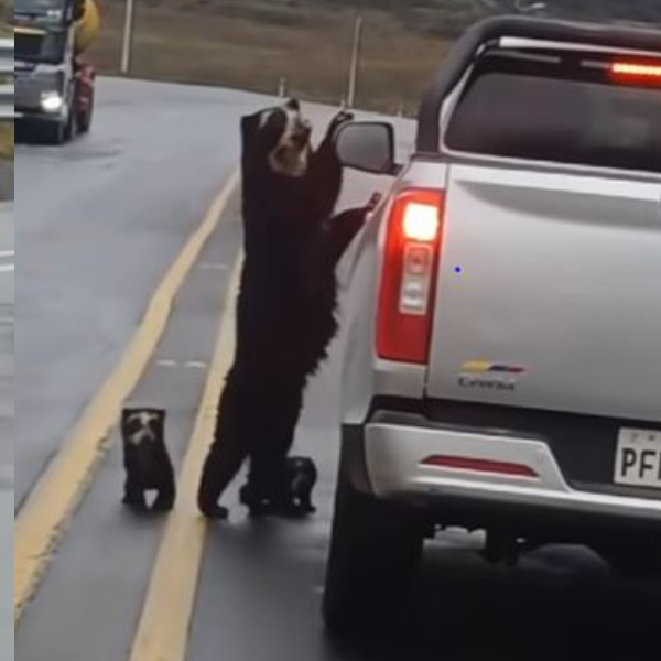 Al final, el oso de anteojos y las crías se alejaron de la carretera.