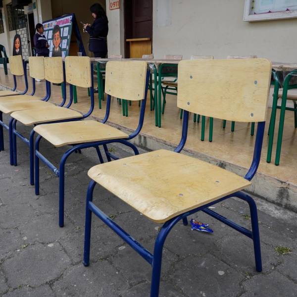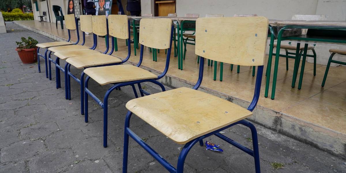 Imagen de pupitres entregados el pasado 15 de septiembre de 2025 en la Unidad Educativa Otavalo. En ese cantón están suspendidas las clases presenciales por el paro nacional.( )