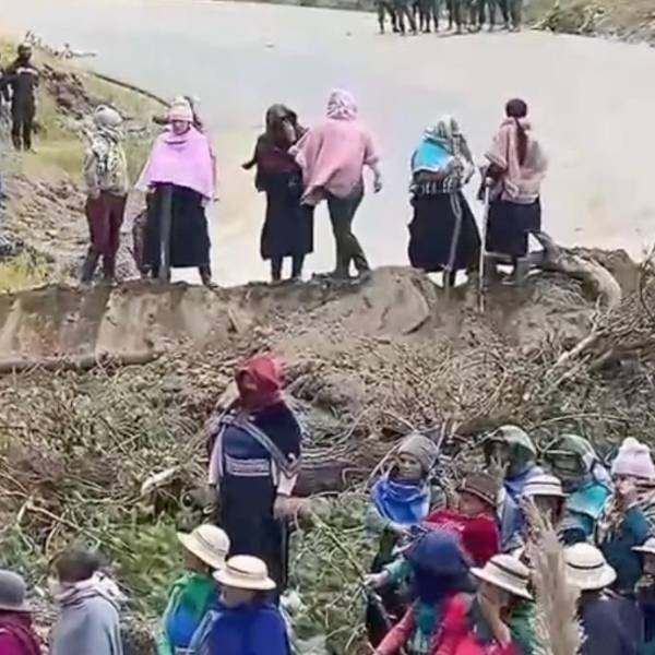 En el sector de Quindigua, comuneros se enfrentaron a uniformados de la Policía Nacional y de las Fuerzas Armadas. El uso de gas lacrimógeno obligó a los manifestantes a replegarse hacia las montañas.