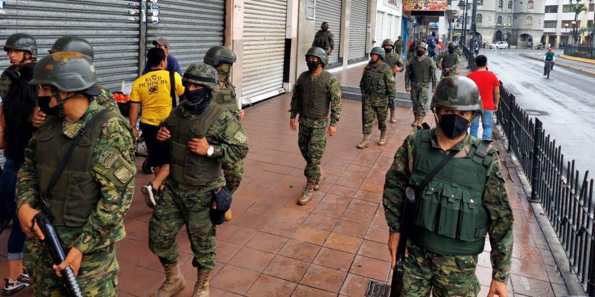 El mismo panorama se observó ya avanzada la tarde en los locales de electrodomésticos, tiendas de ropa y restaurtantes a lo largo de la avenida 9 de Octubre, donde se reforzó la presencia policial con militares.