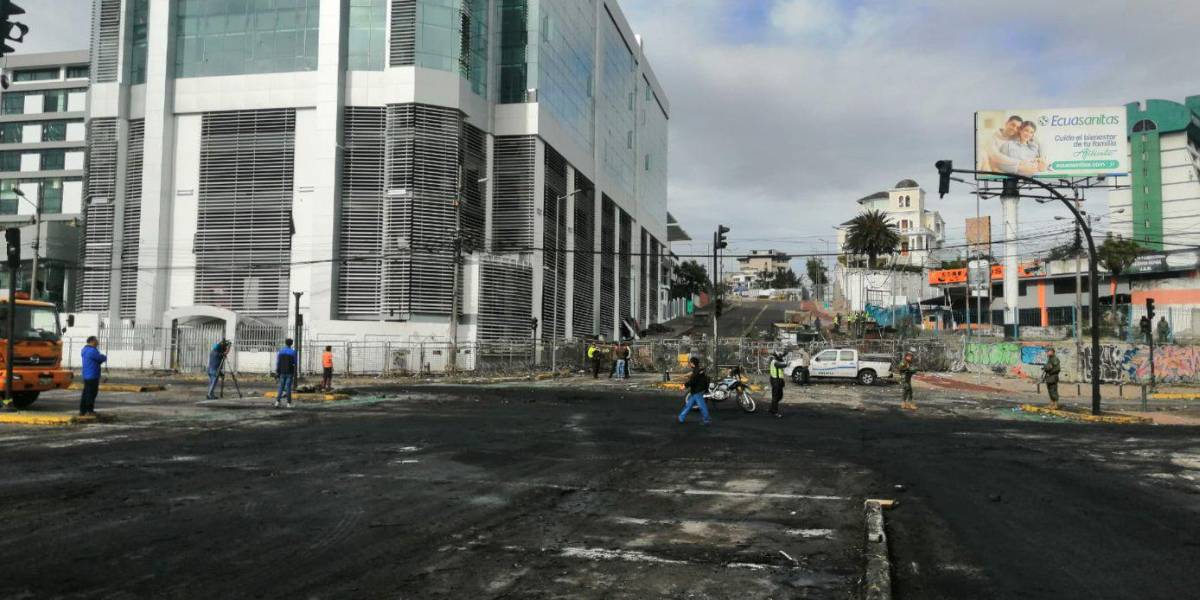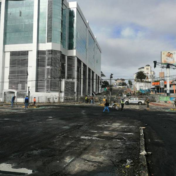 Al momento, se encuentra personal trabajando en la limpieza sobre la Av. 6 de Diciembre y Tarqui, sector el Arbolito. Donde fue el escenario de conflicto entre manifestante y policía. El tránsito vehicular en la avenida Patria y 6 de Diciembre se encuentra habilitado desde la noche del 24 de junio.