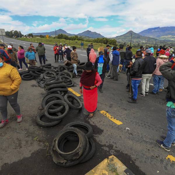 Indígenas cierran con llantas una carretera en el sector Romerillo mientras protestan contra las políticas del Gobierno de Guillermo Lasso.( )