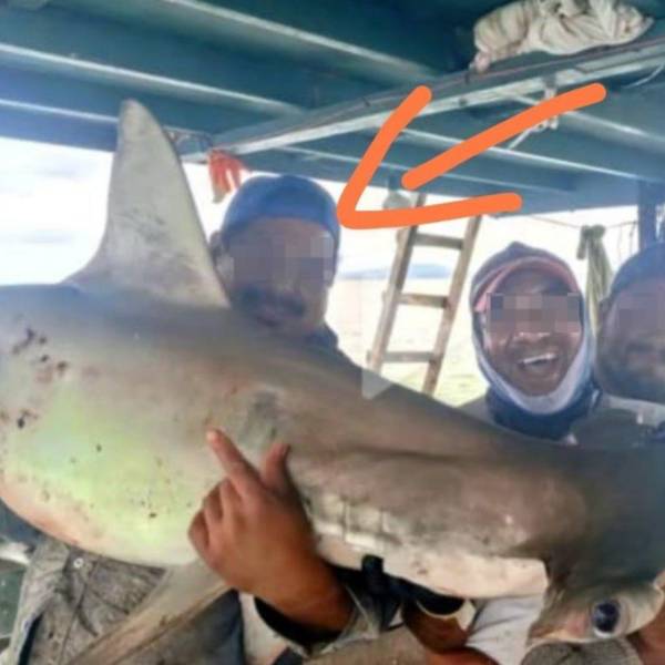 Foto del pescador denunciado por posar con un tiburón martillo.( )