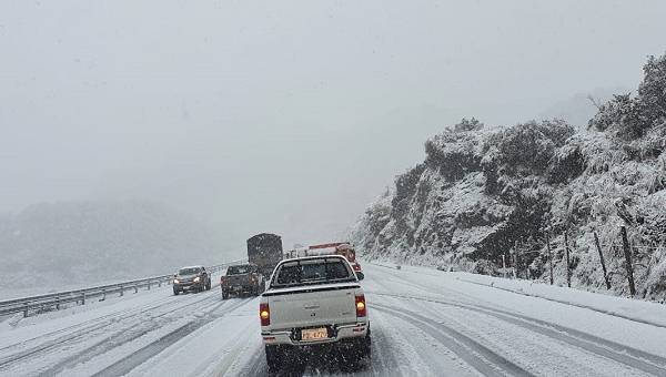 En la mañana de este viernes, la Vía Pifo - Papallacta amaneció cubierta de nieve, lo que ocasionó que varios vehículos tengan problemas en el lugar.