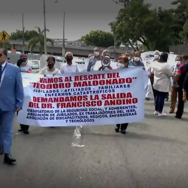 Realizaron un plantón porque aseguran que no ven más opciones para ser escuchados. Se pararon con carteles y megáfonos afuera de consulta externa del hospital del IESS, Teodoro Maldonado Carbo.