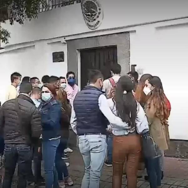 Son personas que quieren viajar a México y esperan en la embajada recibir la autorización de ingreso.