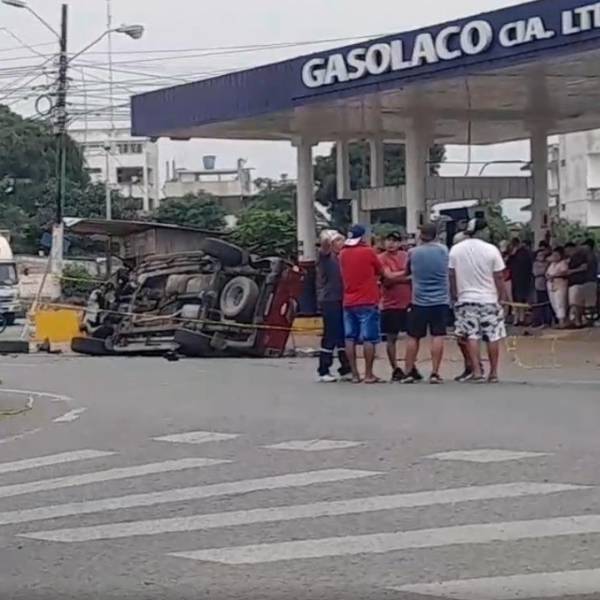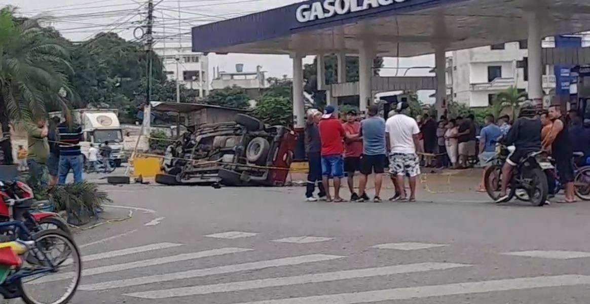 Imagen de un siniestro de tránsito en los exteriores de una gasolinera en Pasaje, El Oro, ( )