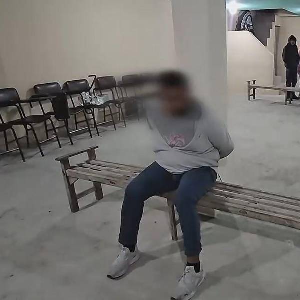 Los tres agentes permanecen atados a las columnas de un inmueble.