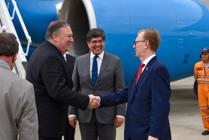 Pompeo se reunió con Moreno en un hotel de Guayaquil por cerca de una hora para conversar, según dijeron, sobre las relaciones bilaterales, la situación regional y la cooperación en temas como la lucha contra el narcotráfico y la corrupción.