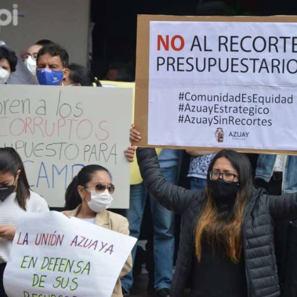 Las manifestaciones no solo se organizaron en Quito. En otras ciudades también se llevaron a cabo manifestaciones desde las prefecturas. Es el caso de Cuenca, donde marcharon los funcionarios de la Prefectura de a}Azuay acompañando a la máxima autoridad de esa institución. Se concentraron en los exteriores de la gobernación.