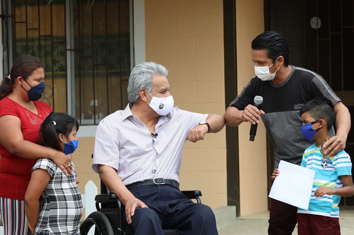 El Jefe de Estado realizó un recorrido por el lugar para constatar que las casas se encuentren en condiciones óptimas. Allí entregó las llaves del nuevo hogar a los propietarios y resaltó la importancia de contar con un espacio apropiado, habitable y bonito; y a su vez consolidar el sentido de comunidad “el criterio no es solo tener vivienda digna, es tener un sector comunal en el cual se reúnan los vecinos y puedan compartir”, dijo el Mandatario. A ello agregó que, pese a las dificultades económicas que ha atravesado el Ecuador, “nunca se han hecho tantas casas como en este Gobierno (…). Solamente en la pandemia ya he entregado seis urbanizaciones”, subrayó.
