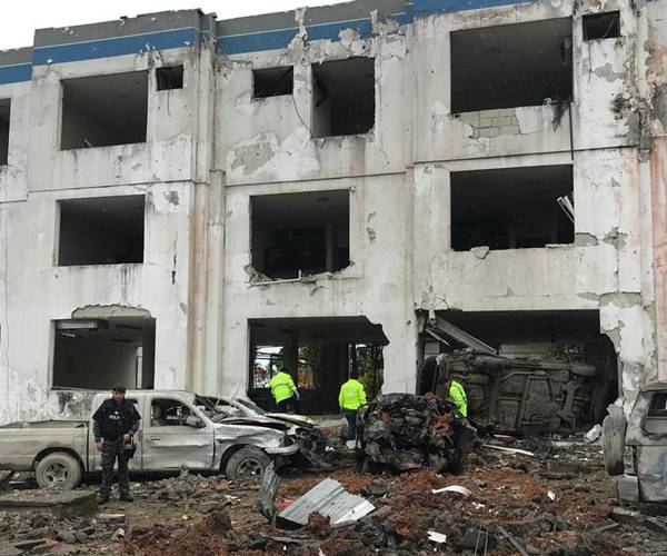 El presidente de la República, Lenín Moreno, calificó como "acto terrorista" del narcotráfico el ataque con coche bomba contra un cuartel policial, ubicado en San Lorenzo (Esmeraldas), frontera con Colombia. Según balance realizado durante la mañana del sábado 27 de enero de 2018, el estallido dejó 24 heridos leves.
