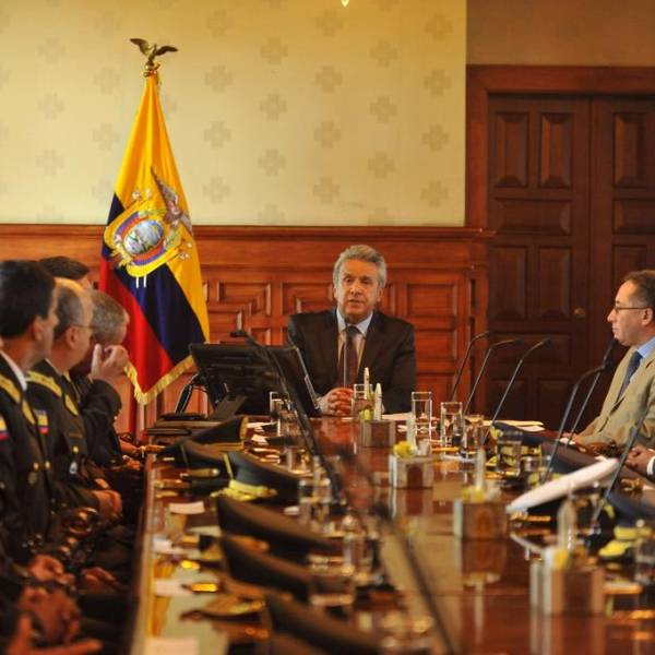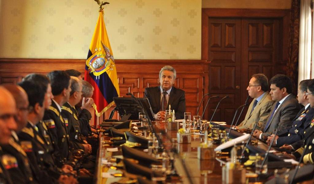 El presidente Lenín Moreno se reunió 12 de junio de 2017 con el alto mando militar y policial. La actividad, que fue informada de último momento por la Secretaría Nacional de Comunicación, se desarrolla en el Palacio de Gobierno.