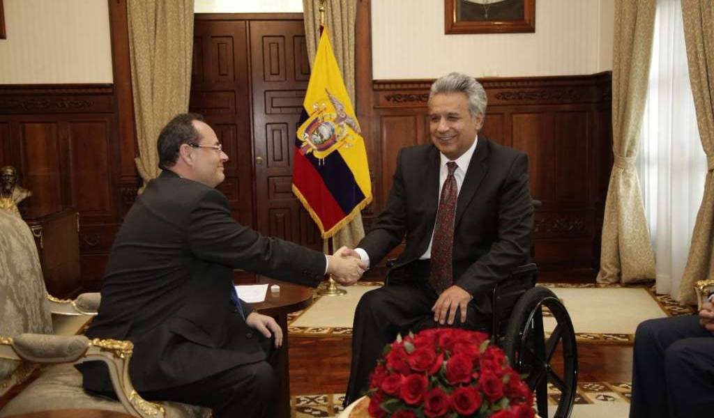 El presidente Lenín Moreno, y el presidente Ejecutivo del Banco de Desarrollo de América Latina (CAF), Luis Carranza, mantuvieron esta tarde una reunión de trabajo. Entre los temas tratados está el apoyo de la CAF al desarrollo del Ecuador.