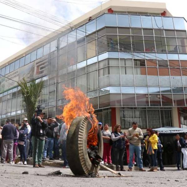 TULCÁN, Ecuador.- Manifestantes intentaron tomarse la Gobernación. Vicepresidente Sonnenholzner rechaza medida. Foto: Ecuavisa