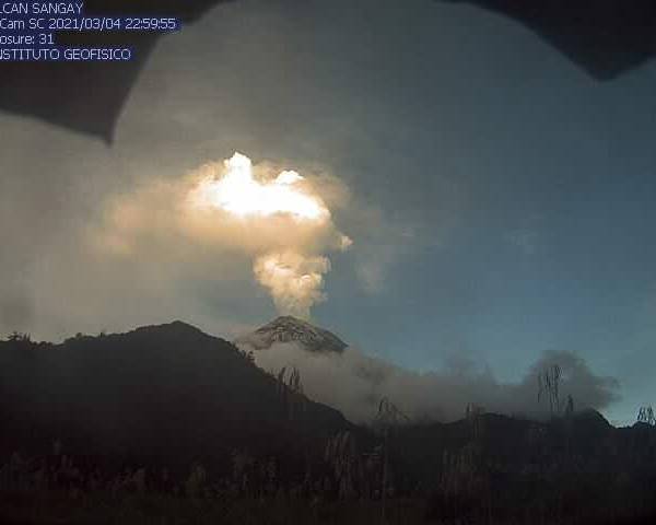 El Instituto Geofísico de la Escuela Politécnica Nacional en su informe diario, del Volcán Sangay, detalla que en las últimas 12 horas se reportó dos alertas de emisión de ceniza con alturas superiores a los 2 000 metros sobre el nivel del cráter. Estas columnas llenas de material volcánico se dirigen al oeste y al sur-oeste. Además, el geofísico aclara que no se ha registrado alertas térmicas en las últimas 24 horas.